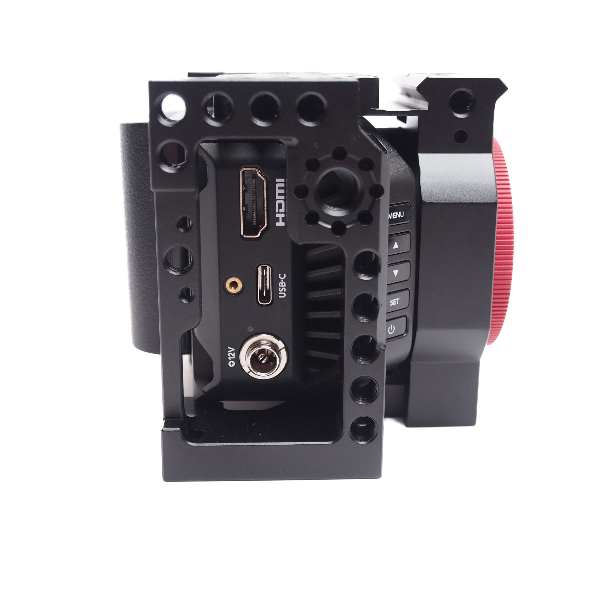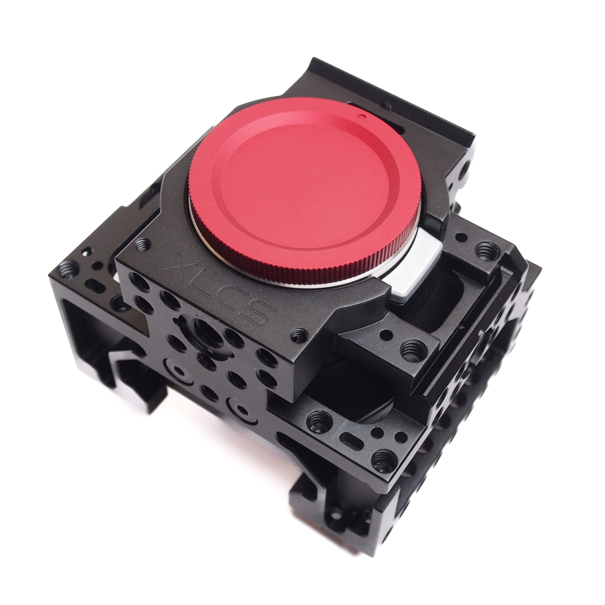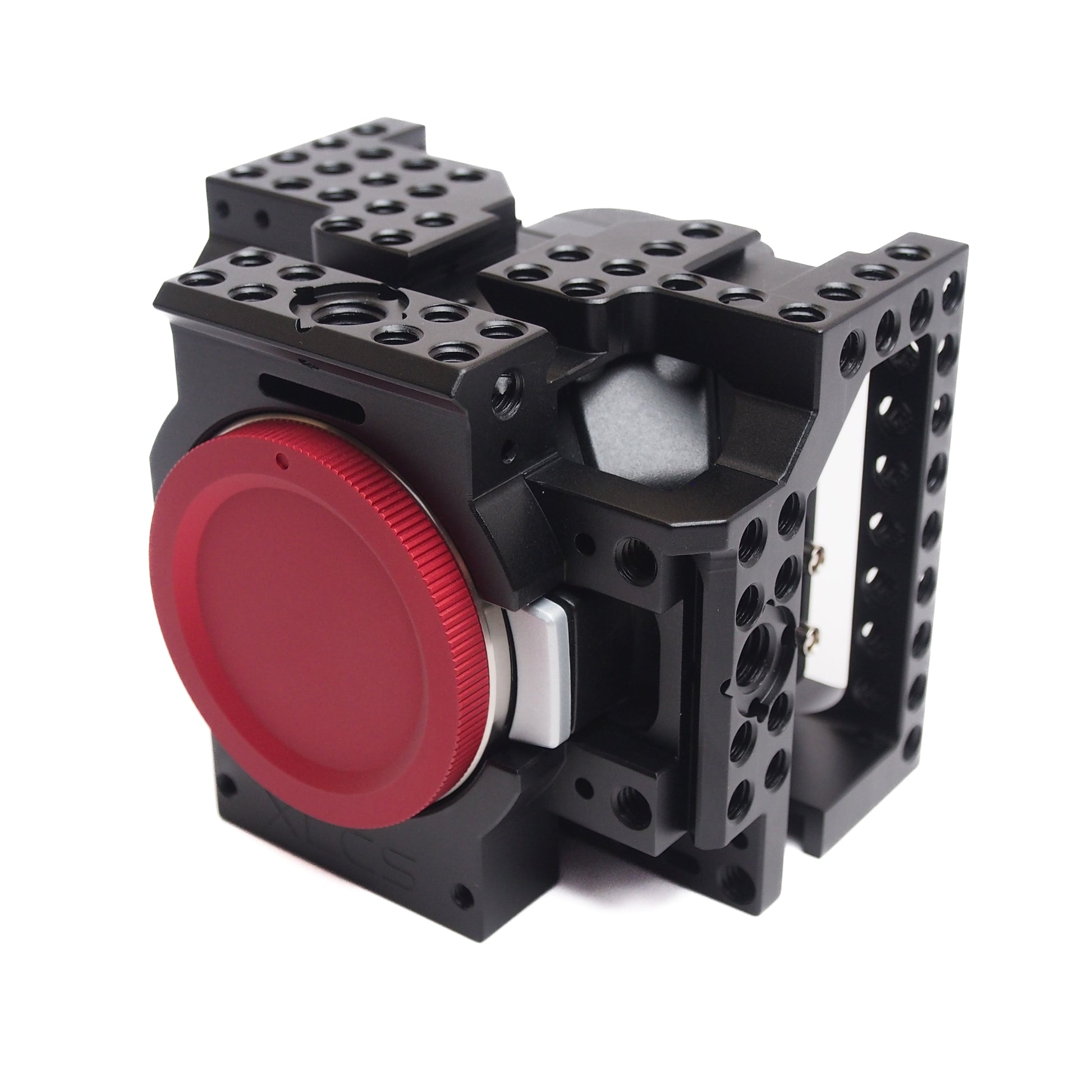 - M4 Holes: Two M4 holes on the face of the cage are designed for using the locking Metabones/Viltrox adapter.